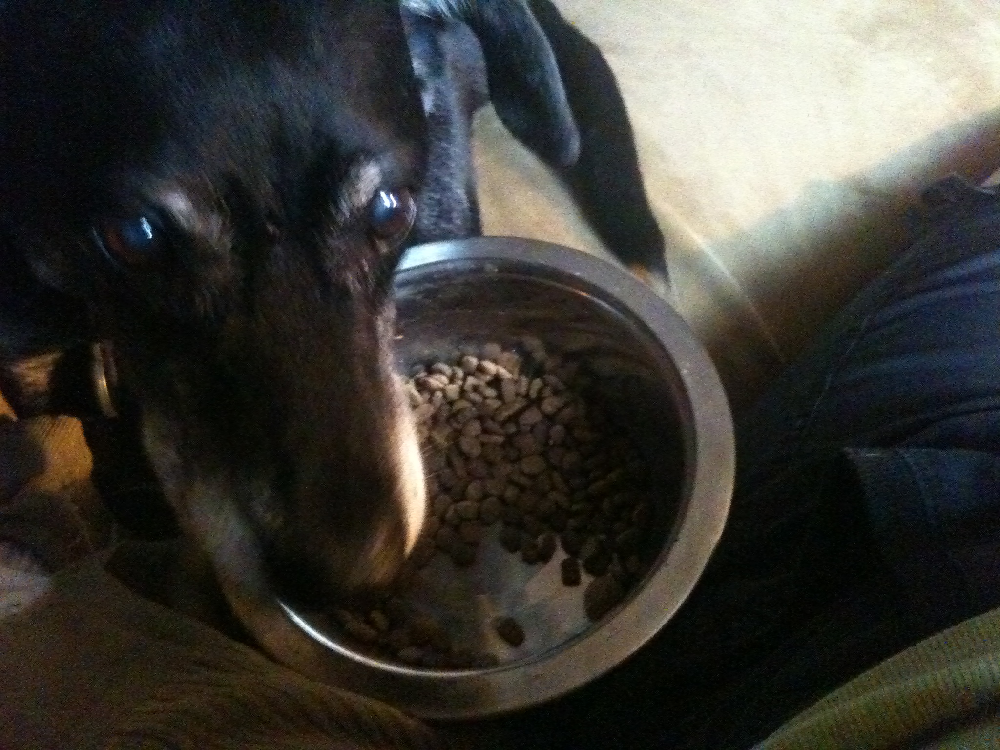 Lately, she refuses food in the morning. She’s turned into a late riser, and would rather snuggle in a tight ball on the couch, snoozing through her usual morning kibble. Once she’s up and about, her senior dog food just doesn’t lure her to the bowl.