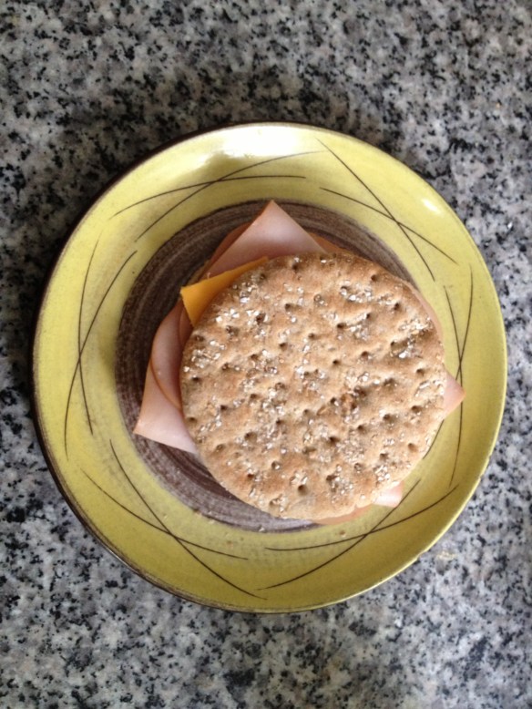 Yes, this awesome turkey and cheddar on wheat sammy was made for Lex. Matt cut it into little triangles, and Lexie ate the whole thing one piece at a time.