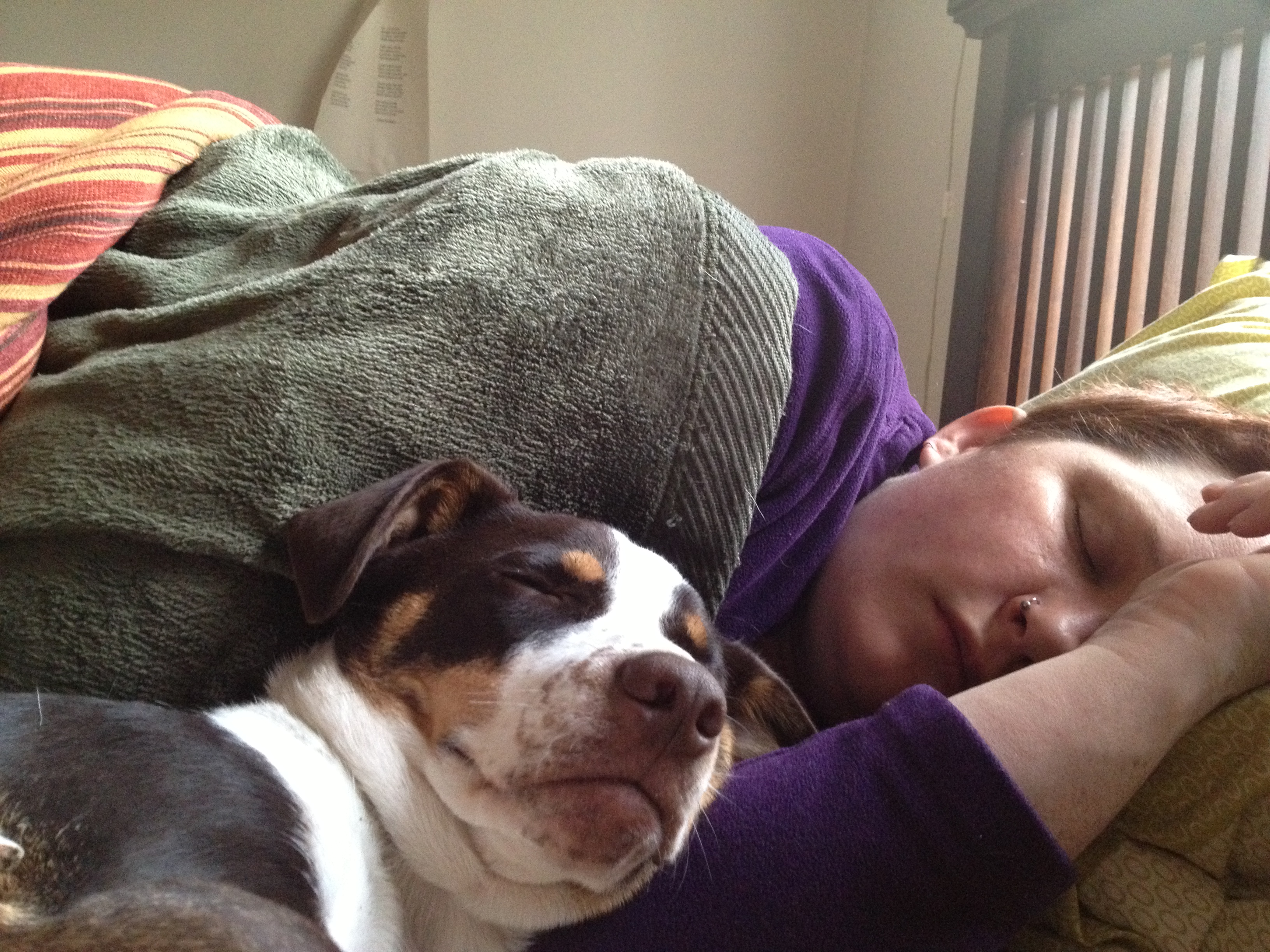 Charlie snuggles in with Jillian for a quick nap-i-poo.