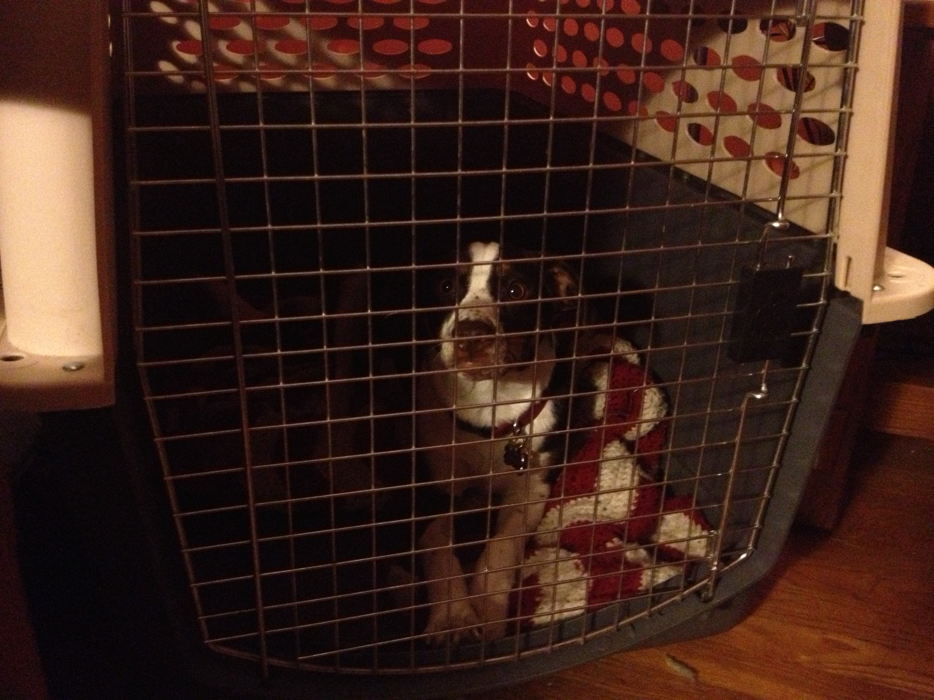 Until further notice, Charlie no longer will be left alone. No more free-range roaming. When we leave the house, even for a short time, Charlie will go in the crate.