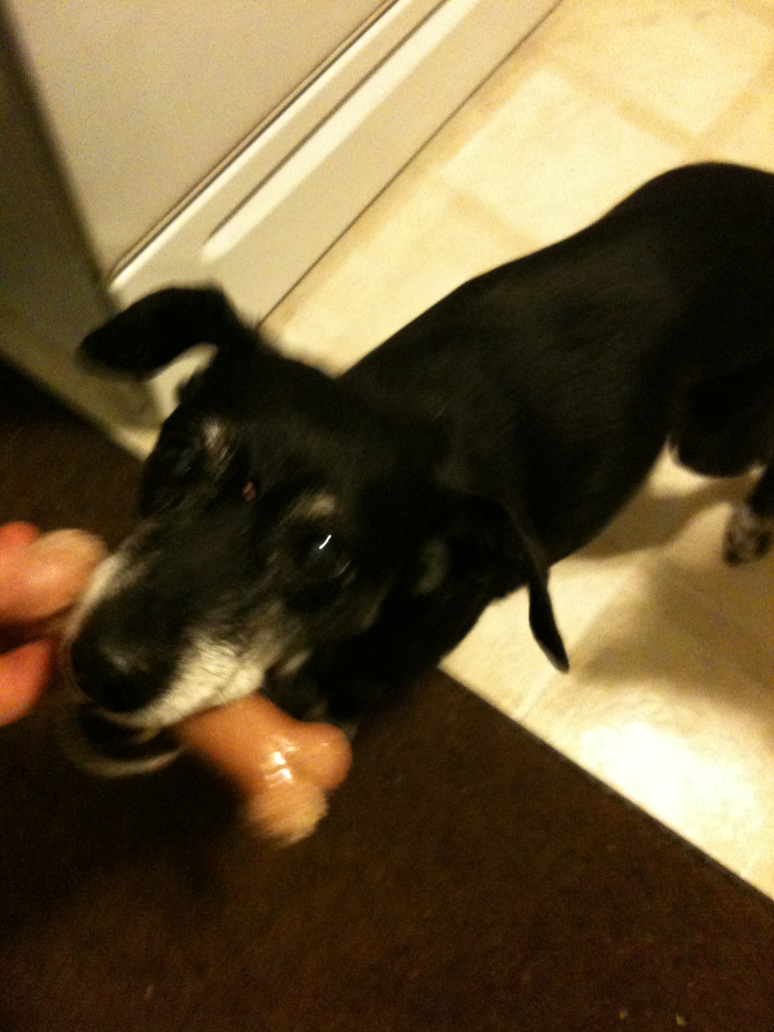 lexiebone Published January 2, 2013 at 1536 × 2048 in Snow, sleep and kittens! Lex snags one of Charlie’s frozen Nylabones.