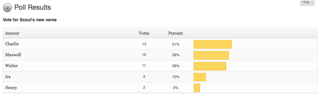 It’s been a week, and we are madly in love with Charlie. Overall, I’d call it a successful transition. He and Lex get along famously, Matt has taught him to sit and he’s housebroken. Well, not really. He still really likes to take a poo in the basement. But he’s close to housebroken.
