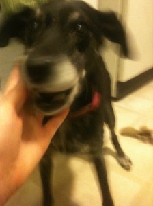 Once I walked into the dog run, I called out her name. I couldn’t see very well, even with the flash light. I pointed the light in the far corner, where I keep the temporary chicken coop from when we first moved into the house. I stood still, and gasped as Cora walked out the front door of the coop. It had rained for the last 24 hours, and she was bone dry. The coop, still filled with straw bedding from the chickens, kept her dry and warm. I scooped her up, and put her into the towel Matt held out in front of him.